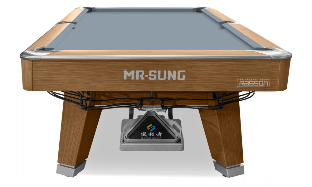 Стол оснащен опорной балкой из стали и дерева. Фирменное выравнивание плиты имеет 18 микрорегулируемых точек для идеально ровной игровой поверхности. Удобная и точная система выравнивания плиты обеспечивает превосходную устойчивость.
